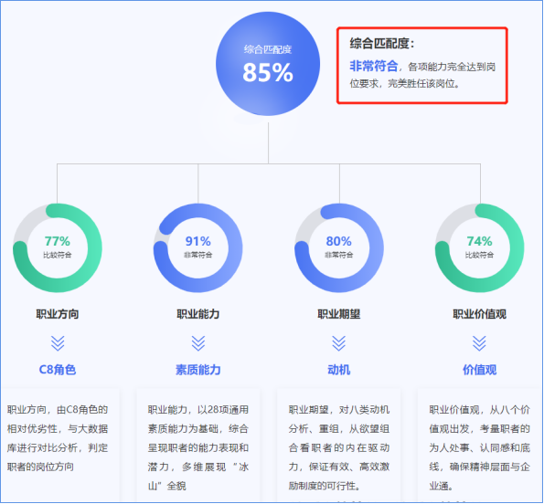 “面试访谈也好,C8人才测评也罢,一切的过程和手段,不过都是为了达到精准甄才的目的。所不同的是,专业的人力资源面试加上有数据化支撑的C8人才测评,能有效、高效的解决人才画像问题,让企业快速、准确的捕获求职者的综合能力,继而做出正确的选择和录用决定。”